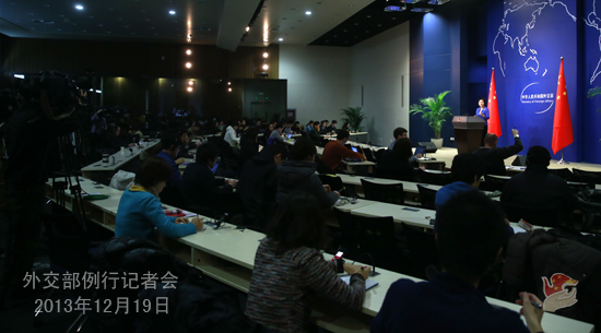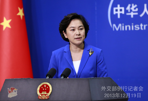 2013年12月19日,外交部發言人華春瑩主持例行記者會。