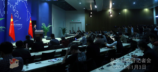 2014年1月3日,外交部發言人秦剛主持例行記者會。