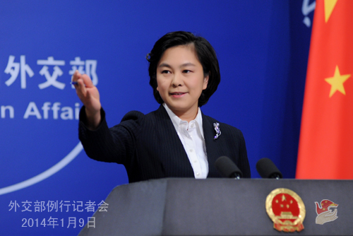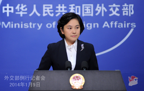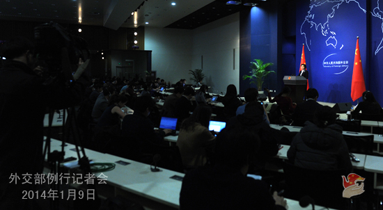 2014年1月9日,外交部發(fā)言人華春瑩主持例行記者會。