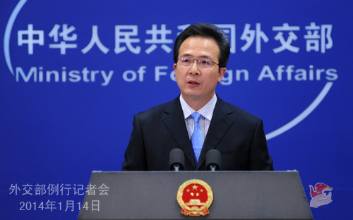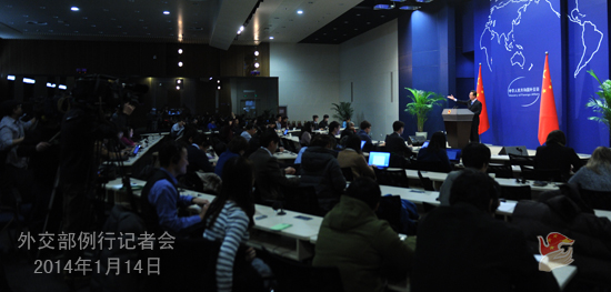 2014年1月14日,外交部發言人洪磊主持例行記者會。