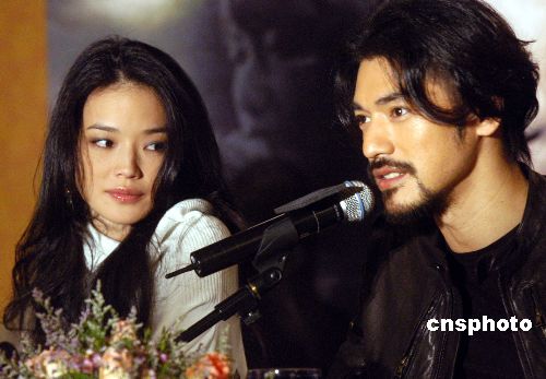 資料圖:2006年12月19日,寰亞電影公司06年度壓軸巨片《傷城》在香港隆重舉行首映記者會(huì)。影星舒淇、金城武在記者會(huì)上向傳媒暢談拍攝的情況。 中新社發(fā) 鄧慶樂 攝
