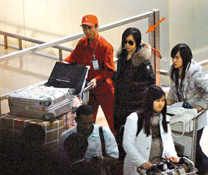 劉嘉玲(箭頭處)抵達(dá)上海機(jī)場