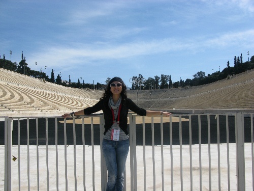 章子怡身在雅典。 章子怡作為搜狐奧運官網特約記者日前飛赴雅典,開始奧運之行。當地時間22日,章子怡一行慕名前往帕納辛納科斯泛體育場、衛城等雅典遺址,沿著奧運圣火傳遞的足跡,為網友報道當地備戰奧運圣火傳遞的盛況。