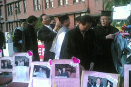 臺灣地區第6屆“立委”在2007年12月21日臺“立法院”第6會期停會的這一天“畢業了”,“立委”們穿著學士服、頭戴學士帽在議場的中庭拍起畢業照,臺“立法院長”王金平還親自為每位“立委”撥穗,顯得有點離情依依。“立委”侯水盛說,感覺真的輕松多了,因為當“立委”的生活質量很差,但也有所收獲,總之畢業后就放空了......《詳細》 |