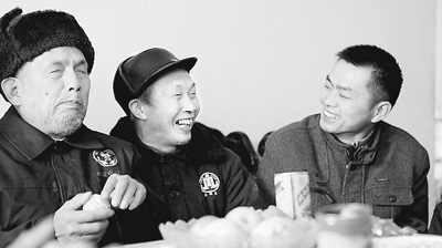 黃輝(右)與老人們閑話家常。