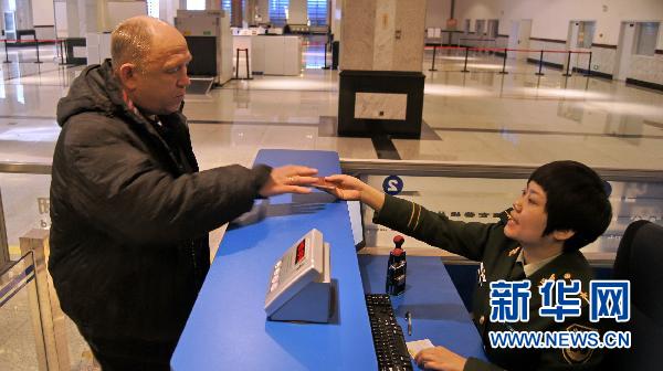 2月2日,邊檢人員為出入境旅客服務。當日是農歷大年三十,位于我國北疆的內蒙古滿洲里口岸依然保持24小時通關。據悉,2010年滿洲里口岸過貨量超過2600萬噸,邊防檢查站先后查驗出入境人數超過140萬人次。新華社記者 李欣 攝