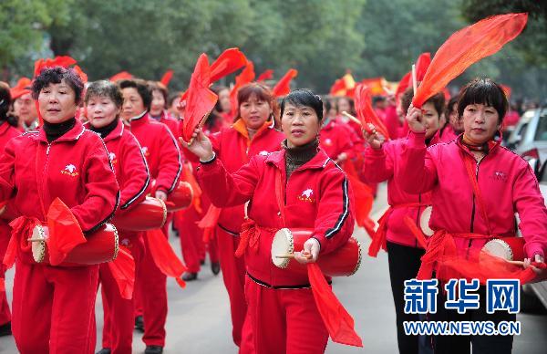 2月16日,腰鼓隊(duì)在巡游中表演。當(dāng)日,湖北武漢市百步亭社區(qū)居民組成舞龍、采蓮船、腰鼓隊(duì)等8支隊(duì)伍在社區(qū)內(nèi)巡游表演,迎接元宵佳節(jié)的到來(lái)。 新華社記者 郝同前攝