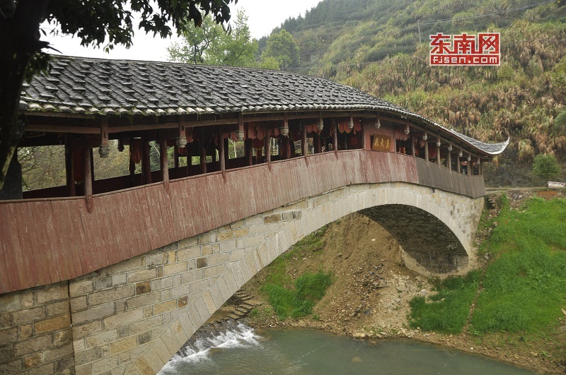 進入坦洋村走不多久,右手邊是一座典型的江南風格的古廊橋。據介紹,這座廊橋始建于清乾隆二年,先后歷經三次重修。橋長39米,跨31米,因為橋上供奉真武大帝所以也叫“真武廊橋”。如今該橋既是交易場所,也是鄉民祭祀祈福的地方,成為坦洋村入口處一道靚麗的風景線。