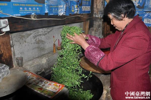 古民居的廚房內,正在“炒茶”的阿姨。(中國臺灣網記者 劉瑩 攝)