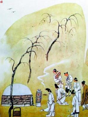 清明掃墓,謂之對祖先的“思時之敬”。其習俗由來已久。明《帝京景物略》載:“三月清明日,男女掃墓,擔提尊榼,轎馬后掛楮錠,粲粲然滿道也。拜者、酹者、哭者、為墓除草添土者,焚楮錠次,以紙錢置墳頭。望中無紙錢,則孤墳矣。哭罷,不歸也,趨芳樹,擇園圃,列坐盡醉。”其實,掃墓在秦以前就有了,但不一定是在清明之際,清明掃墓則是秦以后的事。到唐朝才開始盛行。《清通禮》云:“歲,寒食及霜降節,拜掃壙塋,屆期素服詣墓,具酒饌及芟剪草木之器,周胝封樹,剪除荊草,故稱掃墓。”并相傳至今。