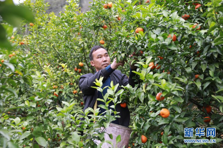 廣西樂業縣新化鎮百坭村村民班統茂在果園里忙碌(2月18日攝)。新華社記者 梁舜 攝