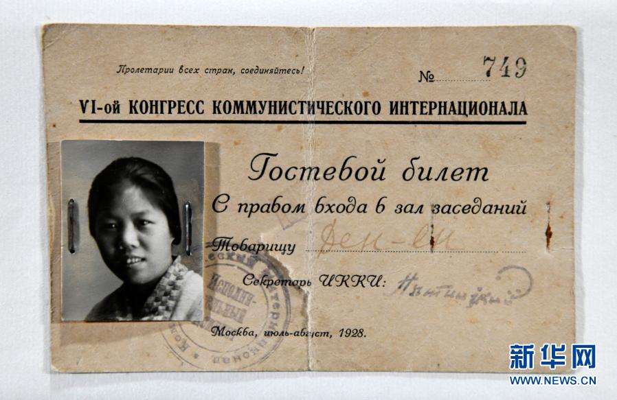 “這是一個長方形的紙質證件,俄文印刷的,上面印有‘全世界無產者聯合起來’‘共產國際第六次代表大會’,用訂書釘固定了一張鄧穎超同志的黑白照片,加蓋有共產國際執委會的徽章。”李勤介紹說,這是1928年鄧穎超參加共產國際六大的列席證。此行,鄧穎超還有一個更重要的任務,陪同周恩來參加黨的第六次全國代表大會。
