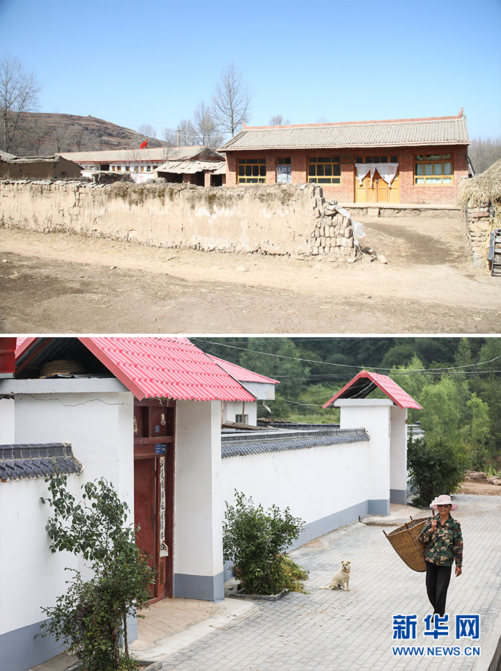 拼版照片:上圖為2013年3月4日拍攝的甘肅省定西市渭源縣元古堆村民居。新華社發(fā)(吳魯 攝);下圖為2020年8月22日在渭源縣元古堆村拍攝的民居。新華社記者 馬希平 攝