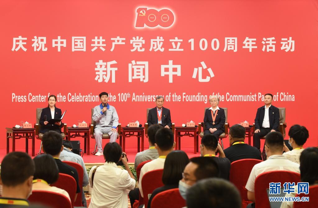 6月28日,慶祝中國共產黨成立100周年活動新聞中心舉辦中外記者見面會。2位“光榮在黨50年”紀念章獲得者代表和2位新發展黨員代表圍繞“傳承百年薪火 踐行初心使命”主題,與記者交流了自己的故事。新華社記者 金良快 攝