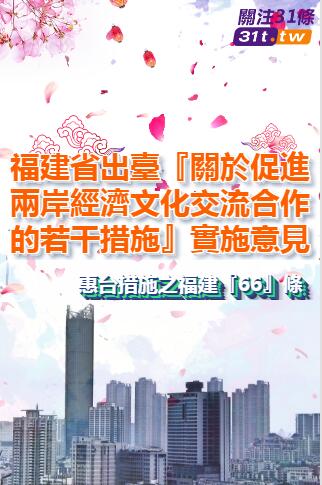 點擊上圖,了解《福建省貫徹〈關于促進兩岸經濟文化交流合作的若干措施〉實施意見》。