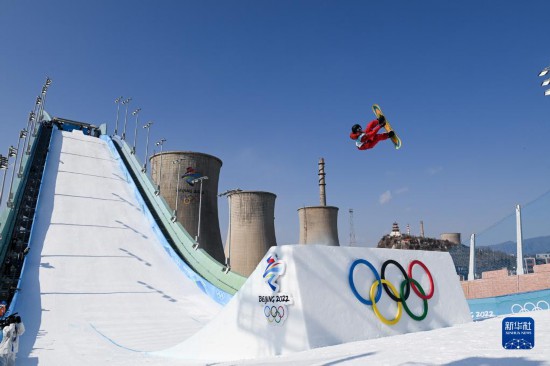 北京2022年冬奧會(huì)單板滑雪男子大跳臺(tái)決賽在北京首鋼滑雪大跳臺(tái)舉行。這是加拿大選手達(dá)西·夏普在比賽中(2月15日攝)。新華社記者 許暢 攝