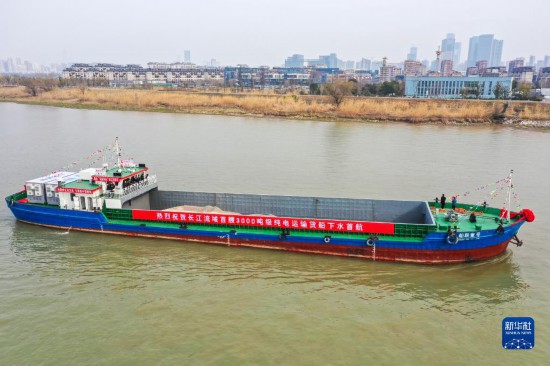 2月22日,長(zhǎng)江流域首艘3000噸級(jí)純電動(dòng)貨船“船聯(lián)1號(hào)”在南京首航。這艘船由燃油貨船改造而成,把電能作為整艘船的唯一能源,實(shí)現(xiàn)零排放、低噪音、無(wú)污染。