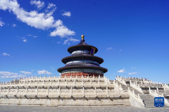 這是藍(lán)天白云下的北京天壇祈年殿(2021年6月4日攝)。新華社記者 陳曄華 攝