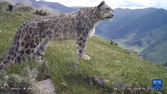 這是三江源國(guó)家公園內(nèi)紅外相機(jī)捕捉到的雪豹(2020年7月3日攝)。新華社發(fā)(三江源國(guó)家公園管理局供圖)