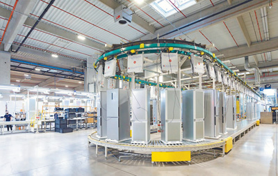 羅馬尼亞阿利安索工業園內,海爾冰箱互聯工廠正式投產。圖為工廠車間內景。