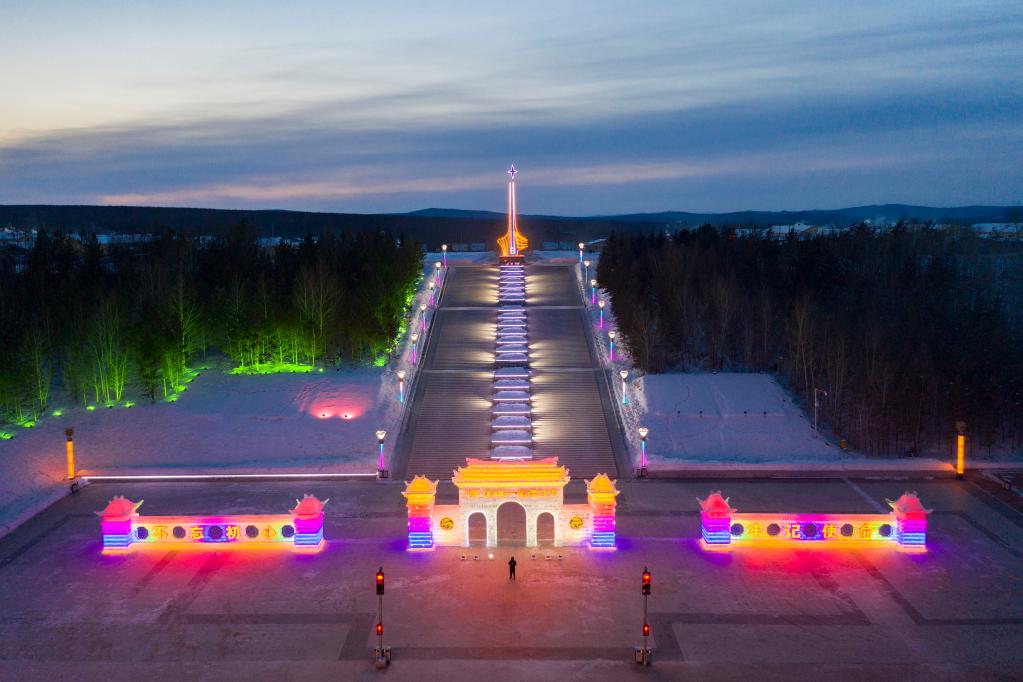 2021年1月8日拍攝的漠河市北極星廣場(無人機照片)。新華社記者 謝劍飛 攝