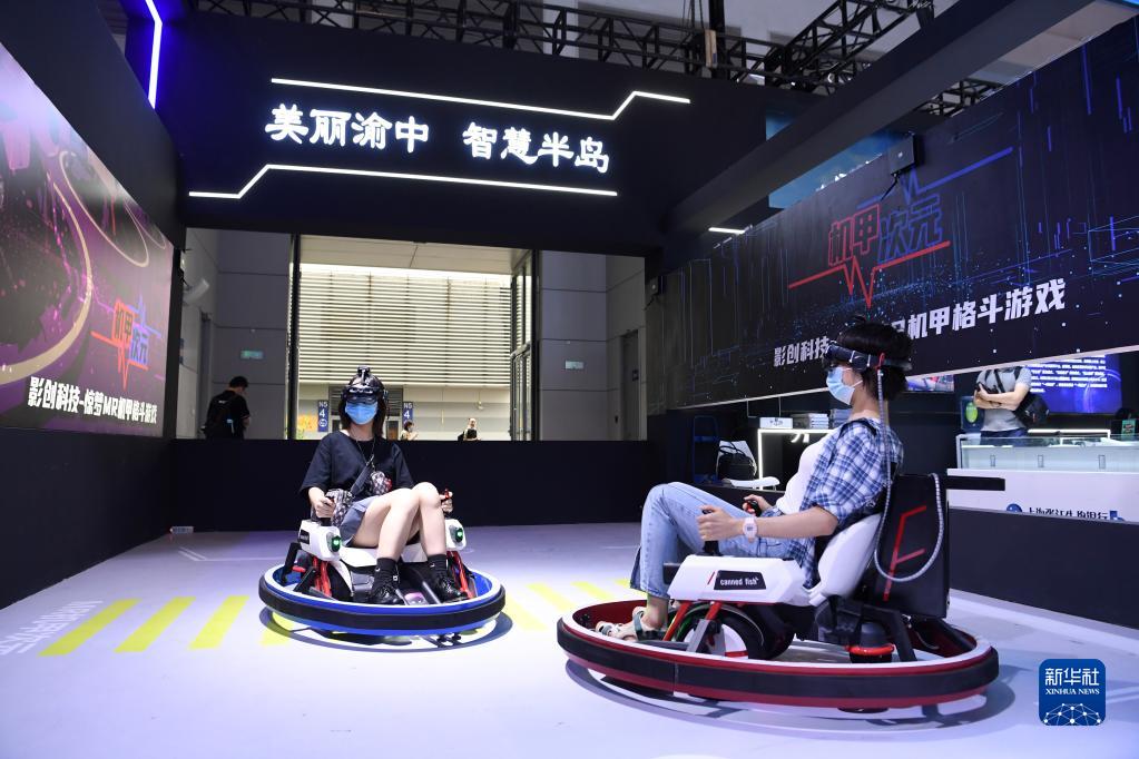 2021年8月23日,觀眾在2021中國國際智能產業博覽會上通過MR技術體驗機甲格斗游戲。新華社記者 唐奕 攝