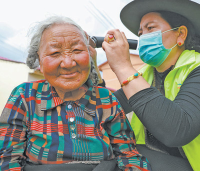 甘肅省甘南藏族自治州碌曲縣社會(huì)綜合福利院,護(hù)理人員給老人理發(fā)。近年來,甘南州累計(jì)投入資金2.5億元,用于養(yǎng)老機(jī)構(gòu)建設(shè)、居家養(yǎng)老運(yùn)營補(bǔ)貼和設(shè)施配備維修等,已建成59個(gè)公辦養(yǎng)老機(jī)構(gòu)和320家農(nóng)牧村互助幸福院。