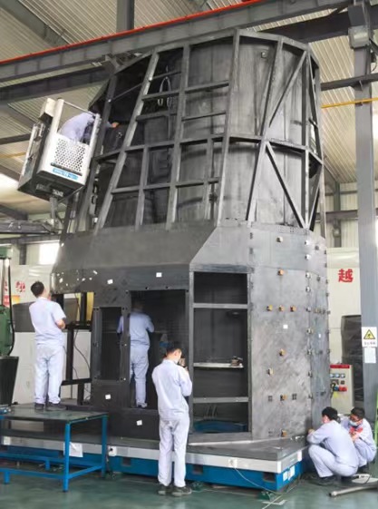 2021年王維和團隊成員在望遠鏡結構組裝現場。(受訪者供圖)