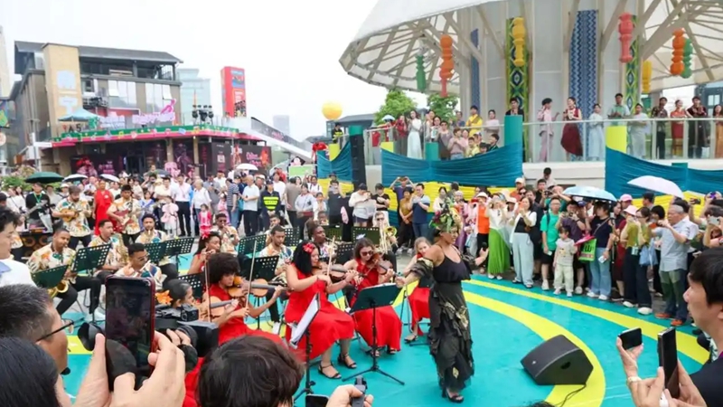 “世界同唱·三月三”特色表演引眾多游客圍觀(央廣網(wǎng)發(fā) 徐天保 攝)
