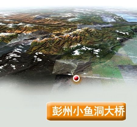 小魚洞大橋于1999年建成通車,總長度187米,主橋主跨40米,寬12米,共4孔,全鋼架拱橋,是通往彭州龍門山鎮、小魚洞鎮的必經之路,也是通往龍門山景區的咽喉。因該橋正好處于龍門山地震斷裂帶上,地震時被震垮,導致10萬群眾被困大山里。