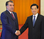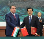 胡錦濤與塔總統拉赫蒙出席兩國有關文件簽字儀式