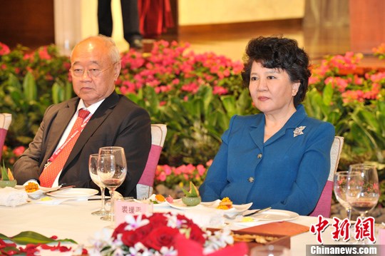 4月10日晚,海口市政府舉行2014年博鰲亞洲論壇華商圓桌會議招待晚宴,來自世界各地的23位知名華商領袖出席。圖為國務院僑務辦公室主任裘援平出席招待晚宴。中新社發 駱云飛 攝