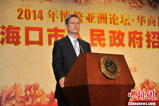 4月10日晚,海口市政府舉行2014年博鰲亞洲論壇華商圓桌會議招待晚宴,來自世界各地的23位知名華商領袖出席。海口市市長倪強表示,海口正在積極推進“世界華僑華人交流中心”項目建設,促進華僑華商交流合作、共同發展。