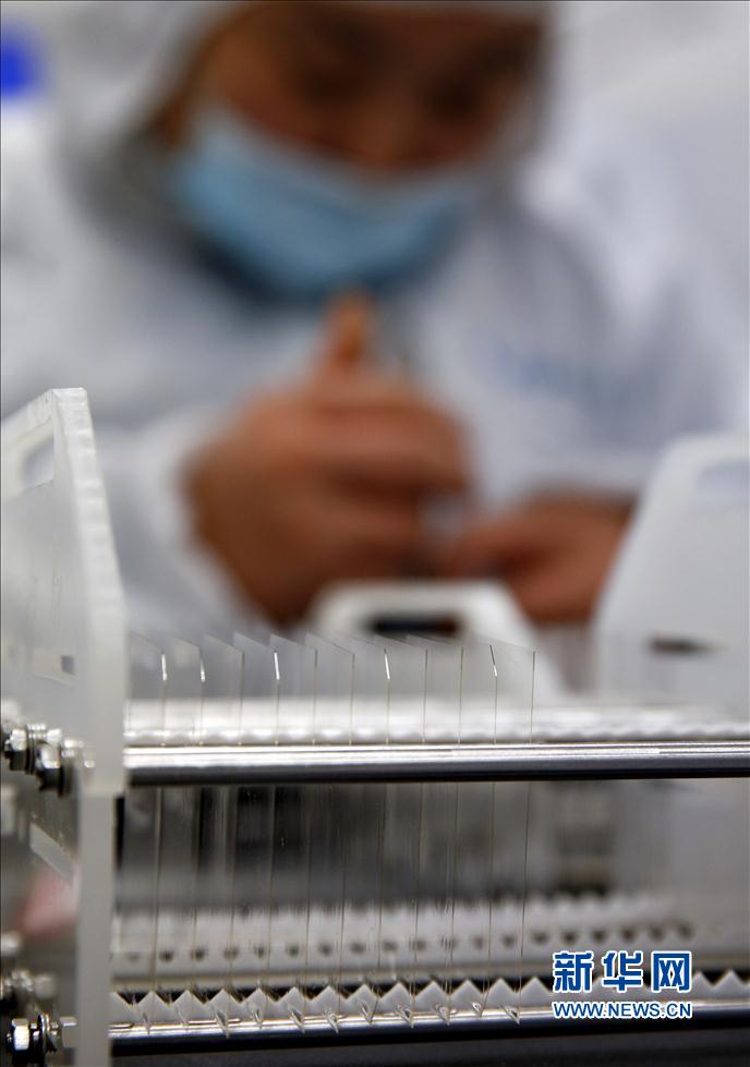 12月14日,星箭特種玻璃有限公司的工作人員在對航天玻璃片進行檢查。
