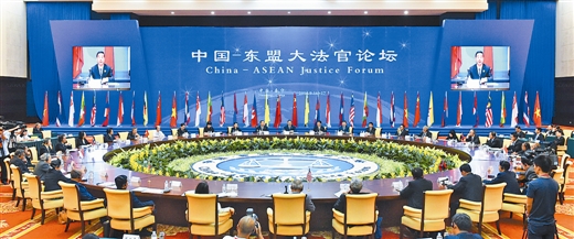 來自文萊、柬埔寨、印度尼西亞、老撾、馬來西亞、新加坡、泰國等東盟國家大法官在會上致辭。