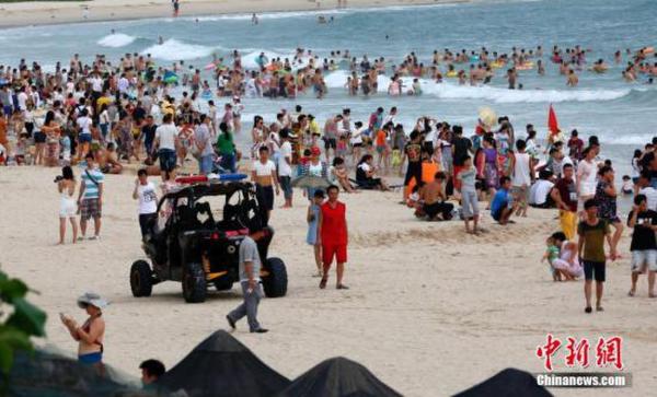 資料圖:2016年6月9日,海南三亞,大批當地市民和游客在大東海海灘扎堆“洗龍水”過端午節(jié)。中新社記者尹海明攝