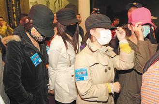 邱毅帶5位戴口罩、帽子的女子到場(chǎng),媒體好奇是否有“妮可”,邱毅表示只有陳致中知道。(圖片來(lái)源:臺(tái)灣《聯(lián)合報(bào)》)