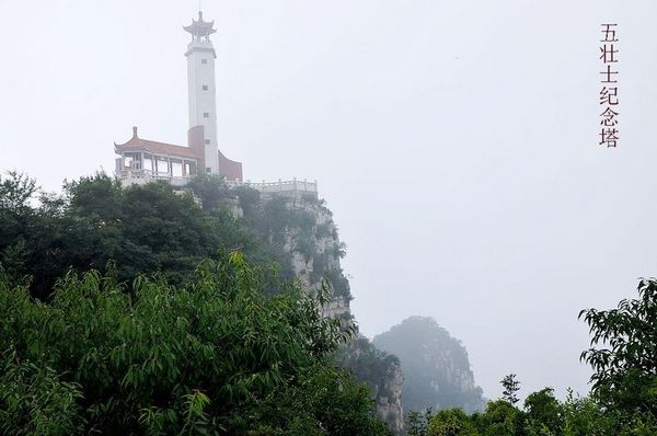 資料圖:狼牙山山區人民,為永遠紀念 “ 狼牙山五壯士 ” ,特在狼牙山頂峰棋盤陀上修建了一座雄偉的紀念塔。