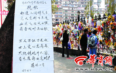3月27日,掛在南平實(shí)驗(yàn)小學(xué)外的挽歌