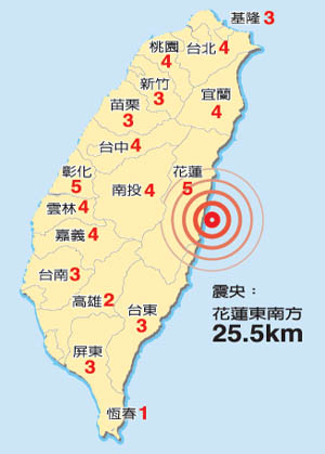 全臺各地震度 來源:臺灣《聯合報》
