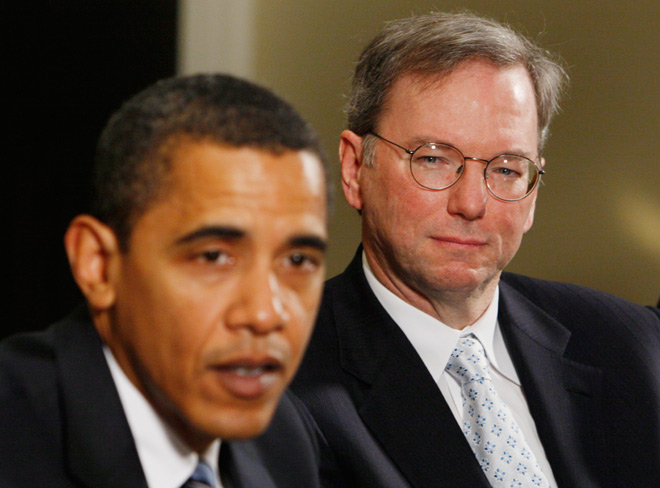 美國總統(tǒng)奧巴馬(左)與谷歌首席執(zhí)行官埃里克·施密特