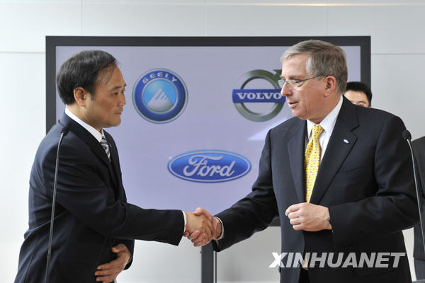 吉利集團(tuán)董事長李書福和福特汽車公司首席財(cái)務(wù)官Lewis Booth在哥德堡簽署了該協(xié)議,中華人民共和國工業(yè)和信息化部部長李毅中以及瑞典副總理兼企業(yè)能源部長Maud Olofsson出席了簽署儀式。