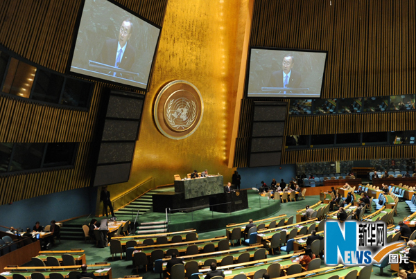 會議在聯大會議廳舉行,聯合國秘書長潘基文和會員國常駐聯合國的代表出席會議。