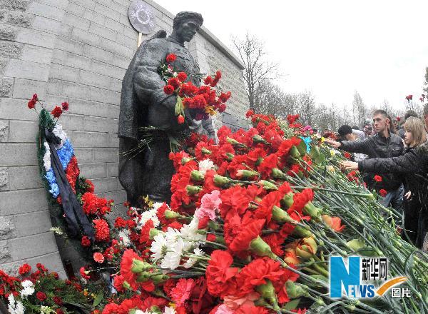 5月9日,在愛沙尼亞首都塔林,蘇軍解放塔林紀(jì)念碑前堆滿了獻(xiàn)花。當(dāng)天,愛沙尼亞舉行各種活動,慶祝世界反法西斯戰(zhàn)爭勝利65周年。新華社發(fā)(維克托攝)