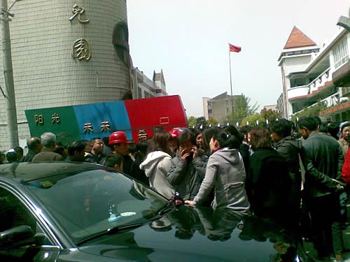 記者12時在現(xiàn)場看到,幼兒園大門已被封鎖,仍有數(shù)百群眾圍觀,門口馬路實行交通管制,法醫(yī)正在校園南側(cè)教學樓勘察。