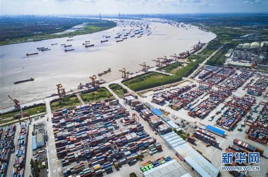 這是武漢長江中游航運中心核心港陽邏港(2018年8月13日無人機拍攝)。新華社記者 肖藝九 攝