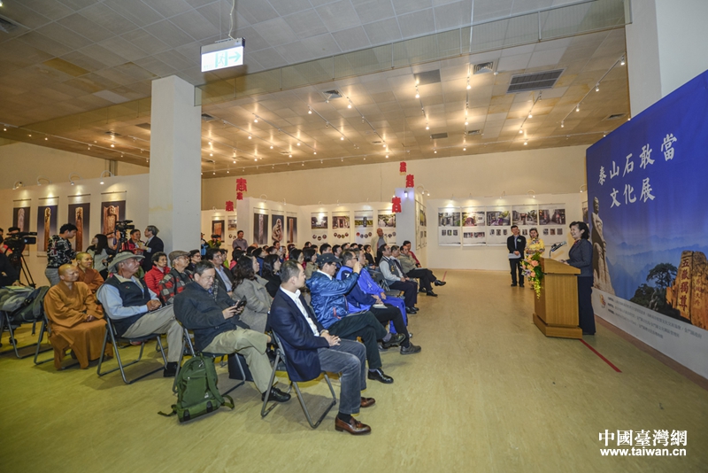 2017年11月23日和25日,由泰安市臺辦、泰安市泰山風(fēng)景名勝區(qū)管委會主辦的“2017走進臺灣--泰山文化系列巡展”活動分別在高雄85大樓和臺南善化東岳殿成功舉辦。中國國民黨中央評議委員會委員王素惠、臺南市善化區(qū)區(qū)長方澤心、臺南市前議員李文俊等分別出席開幕儀式。臺灣各界人士200余人出席開幕活動,其中有從臺北、云林、苗栗等地趕來參加,展覽在當(dāng)?shù)匾疝Z動。兩岸多家媒體進行了宣傳報道,本定于11月30日展覽結(jié)束,經(jīng)社會各界要求,主辦方將展出時間延長至12月10日。展覽結(jié)束后,泰山文化圖片展以及泰山石敢當(dāng)文化展所有展板繼續(xù)在臺灣其他東岳宮廟進行巡展。