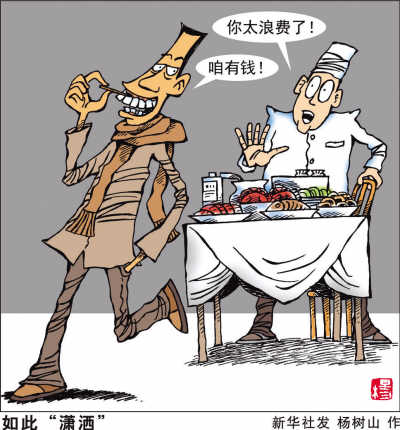 網友“君不見”:在賓館酒樓,一些人推杯換盞、海吃山喝,離席時,杯盤狼藉,吃一半、倒一半;有的單位以團拜、慰問、聯誼、慶典為名,盡情狂歡,大肆揮霍,住星級酒店、發高檔禮品;有的樓堂會所,貪大圖洋、氣派非凡;有的干部公務用車追求豪華,甚至公車私用,無比愜意……對公款浪費,奢侈之風,人民群眾深惡痛絕。