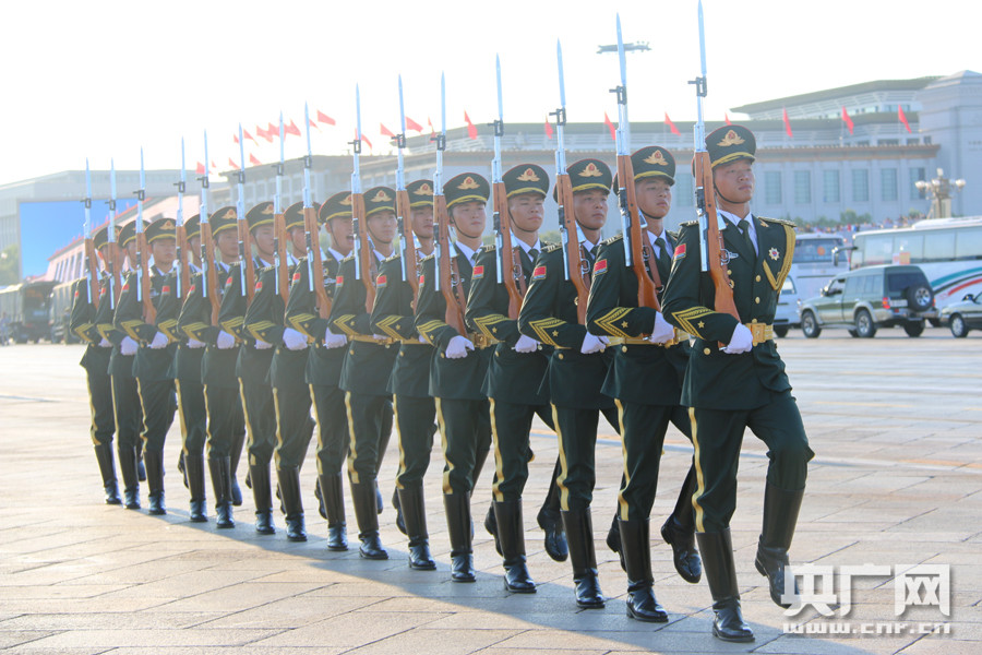 沐浴自由和平的陽光,升旗儀式護衛方隊走過121步——中國人民從1894年甲午戰爭以來反抗外來侵略屠殺121載艱苦卓絕、愈挫愈勇的不平凡歷程!
