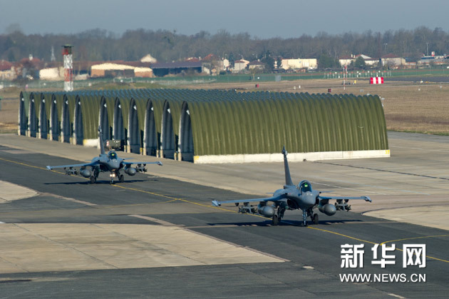 3月21日,法國“陣風”戰機準備參加代號“哈馬丹”的對利比亞的軍事行動。法國總參謀部21日說,法國3天以來在利比亞軍事行動中共出動軍用飛機55架次,飛行時間總計約400小時。新華社發(法國國防部供稿)